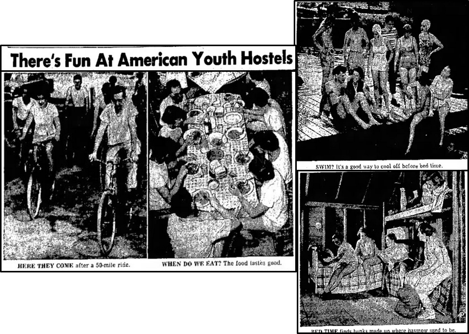 Who could resist the offer of a safe place to rest for just 25 cents a night? Restless folks with long summer days spent their time exploring the countryside on bikes, canoes, simply hiking or any other mode of travel except the automobile. Every hostel had "house parents" who cared for the site and managed day to day operations and even organized square dances. Meals were cooking in the communal kitchen, sleeping areas were strictly girls on one side, boys on the other, and everybody was encouraged to get to know each other and make new friends.