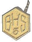 Bee-Keeper 5-year Service Pin, with chain, would be attached to loop on 3-year Service Pin. BHS = Bee-Hive Swarm. A "swarm" is a group of Bee-Hive girls. Discontinued in 1951. |