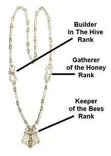 Sterling Silver Chain Award First offered as a permanent visible record of a Bee-Hive Girl's achievements. First sold only in segments as the ranks were earned. Later, in 1921, it was also offered as a completed necklace. |