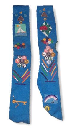 ![]() Azure blue sashed with felt emblems |
