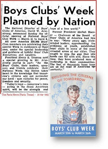 ![]() Famous people have had a long history supporting the good works of the Boys' Clubs of America. |