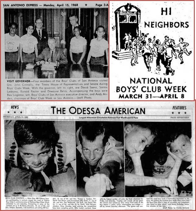 A montage of newspaper clippings noting Boys' Club Week through the years.