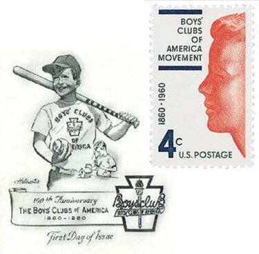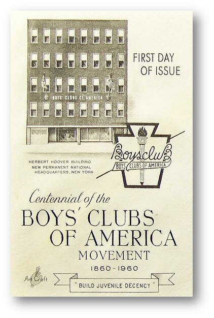 ![]() The official Boys' Clubs of America postage stamp issued for their "first" 100 years 1860-1960. Later they celebrated 100 years differently. |