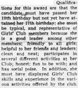 Established in 1952, the contest from the Girls' Clubs of America was nationwide and newsworthy. Quietly, the name of the award was formally changed to "Girl of the Year" in 1963.