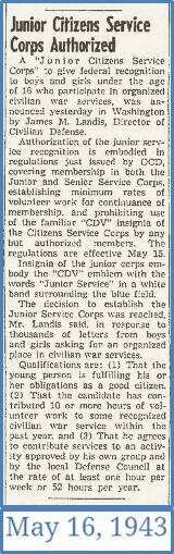 ![]() The Junior Citizens Service Corp worked in cooperation with other youth groups. |