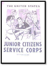 The Junior Citizens Service Corps (JCSC), the junior branch of the United States Citizens Service Corps (which was itself a section of the Civilian Defense Corps), was launched on May 15,1943 - during World War II. Open to all boys and girls under the age of 16, the goal was to get the youth of America involved in the necessary war effort. Although there was no lower age limit, it was suggested in the JCSC handbook to children younger than 10 not be encouraged to join.