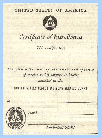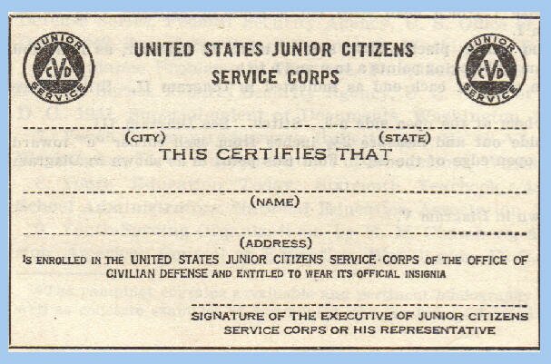 ![]() Enrollment card example for the Junior Citizens Service Corps. |
