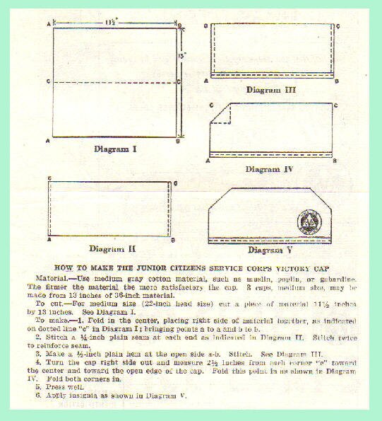 Instructions On How To Make The Junior Citizens Service Corps Victory Cap