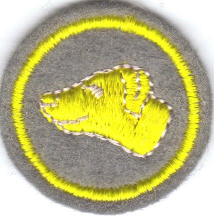 For many years Sunbeam badges have been grey felt with yellow and blue embroidery. Examples: